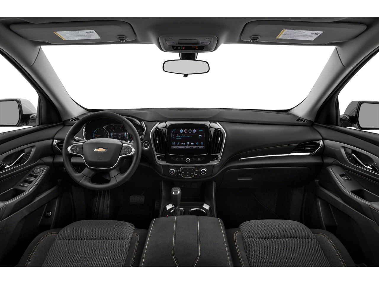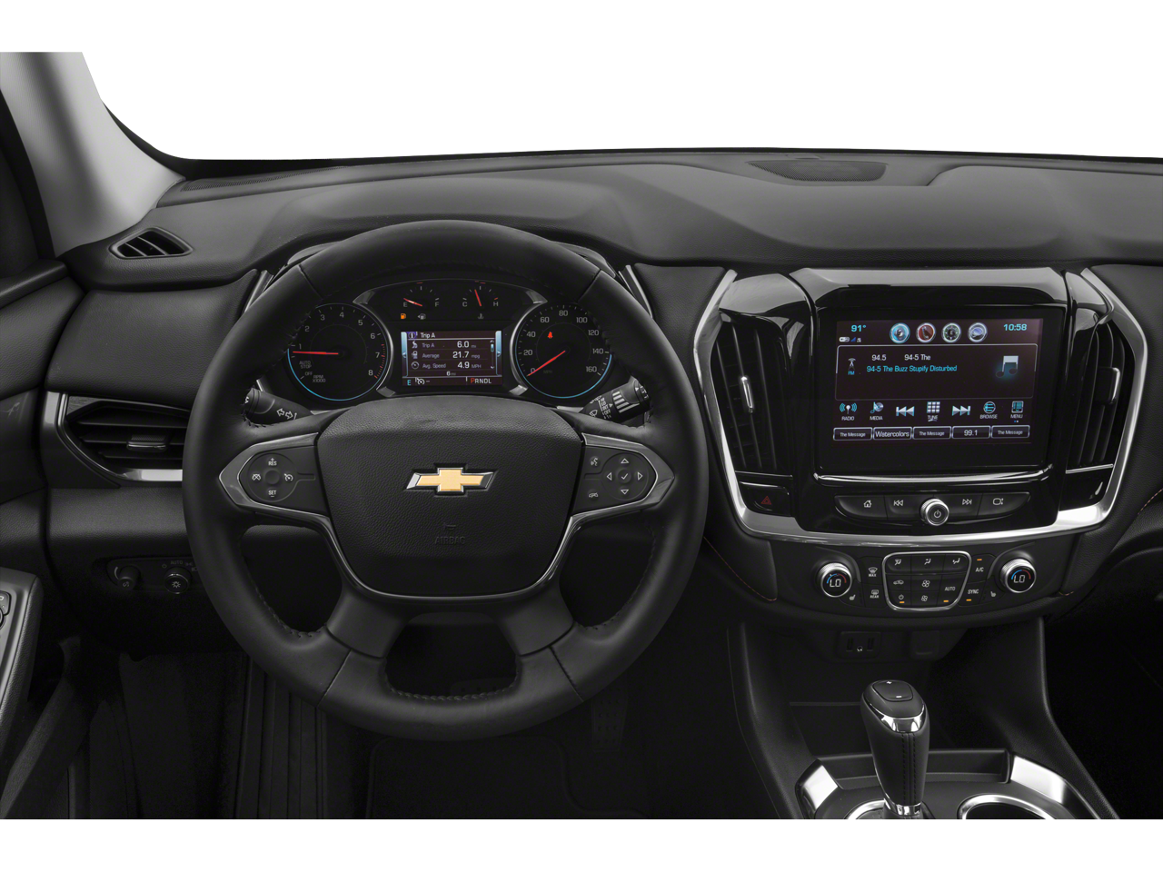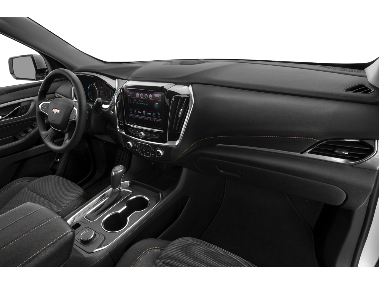 Front License Plate Bracket Mounting Package, Interior Protection Package (LPO) (1st & 2nd Row All-Weather Floor Mats, 3rd Row All-Weather Floor Mats, and All-Weather Cargo Mat (LPO)), Preferred Equipment Group 1LT, AWD, 3.49 Axle Ratio, 3rd row seats: split-bench, 4-Wheel Disc Brakes, 6 Speakers, 7-Passenger Seating (2-2-3 Seating Configuration), ABS brakes, Air Conditioning, Alloy wheels, AM/FM radio: SiriusXM, Apple CarPlay/Android Auto, Automatic temperature control, Brake assist, Bumpers: body-color, Compass, Delay-off headlights, Driver door bin, Driver vanity mirror, Dual front impact airbags, Dual front side impact airbags, Electronic Stability Control, Emergency communication system: OnStar and Chevrolet connected services capable, Four wheel independent suspension, Front anti-roll bar, Front Bucket Seats, Front Center Armrest, Front dual zone A/C, Front fog lights, Front reading lights, Fully automatic headlights, Garage door transmitter, Heated door mirrors, Heated front seats, High-Intensity Discharge Headlights, Illuminated entry, Leather steering wheel, Low tire pressure warning, Occupant sensing airbag, Outside temperature display, Overhead airbag, Overhead console, Panic alarm, Passenger door bin, Passenger vanity mirror, Power door mirrors, Power driver seat, Power Liftgate, Power steering, Power windows, Premium Cloth Seat Trim, Radio data system, Radio: Chevrolet Infotainment 3 Plus System, Rear air conditioning, Rear anti-roll bar, Rear reading lights, Rear window defroster, Rear window wiper, Remote keyless entry, Roof rack: rails only, Security system, SiriusXM w/360L, Speed control, Speed-sensing steering, Spoiler, Steering wheel mounted audio controls, Tachometer, Telescoping steering wheel, Tilt steering wheel, Traction control, Trip computer, Turn signal indicator mirrors, Variably intermittent wipers, Voltmeter, and Wheels: 18 Bright Silver Painted Aluminum.