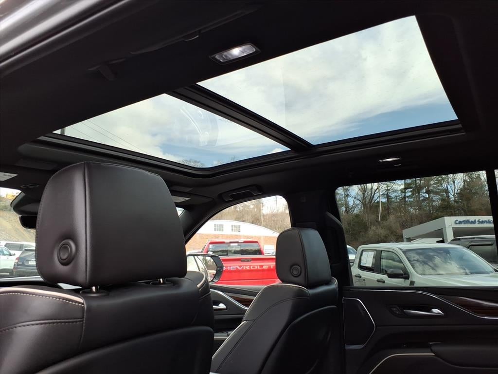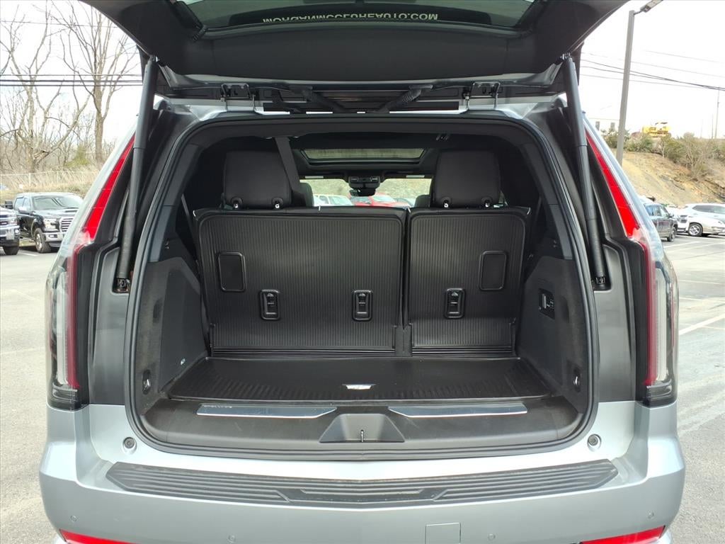 Preferred Equipment Group 1SB (Adaptive Cruise Control, AKG Studio 19-Speaker Audio System, Automatic Seat Belt Tightening, Door Lock & Latch Shields, Enhanced Automatic Emergency Braking, Enhanced Automatic Parking Assist, Glass Breakage Sensor, Heated & Ventilated Driver & Front Passenger Seats, Lane Change Alert w/Side Blind Zone Alert, Mechanical Limited-Slip Differential, Power Panoramic Tilt-Sliding Sunroof, Rear Camera Mirror, Rear Camera Mirror Washer, Rear Cross Traffic Alert, Reconfigurable Full-Color Head-Up Display, Reverse Automatic Braking, Running Board Assist Steps, Theft-Deterrent Alarm System, Vehicle Inclination Sensor, and Vehicle Interior Movement Sensor), AWD, Black Leather, 16.9 Diagonal OLED Infotainment Screen, 19 Speakers, 2-Presets Memory For Driver Seat Adjuster, 3 Years of OnStar & Connected Services Plan, 3.23 Axle Ratio, 3rd row seats: split-bench, 4-Way Power Driver Lumbar Seat Adjuster, 4-Way Power Front Passenger Lumbar Seat Adjuster, 4-Wheel Disc Brakes, 8-Way Power Driver Seat Adjuster, 8-Way Power Front Passenger Seat Adjuster, ABS brakes, Air Conditioning, Alloy wheels, AM/FM radio: SiriusXM with 360L, Apple CarPlay/Android Auto, Audio memory, Auto High-beam Headlights, Auto tilt-away steering wheel, Auto-dimming door mirrors, Auto-dimming Rear-View mirror, Automatic temperature control, Brake assist, Bumpers: body-color, Compass, Delay-off headlights, Driver door bin, Driver vanity mirror, Dual front impact airbags, Dual front side impact airbags, Electronic Stability Control, Emergency communication system: OnStar and Cadillac connected services capable, Exterior Parking Camera Rear, Four wheel independent suspension, Front anti-roll bar, Front Bucket Seats, Front Center Armrest w/Storage, Front dual zone A/C, Front reading lights, Fully automatic headlights, Garage door transmitter, HD Radio, Heads-Up Display, Heated door mirrors, Heated Driv
